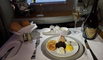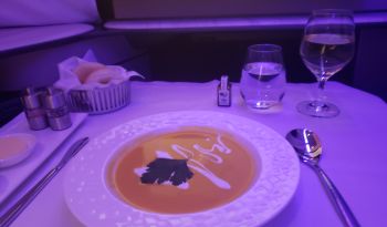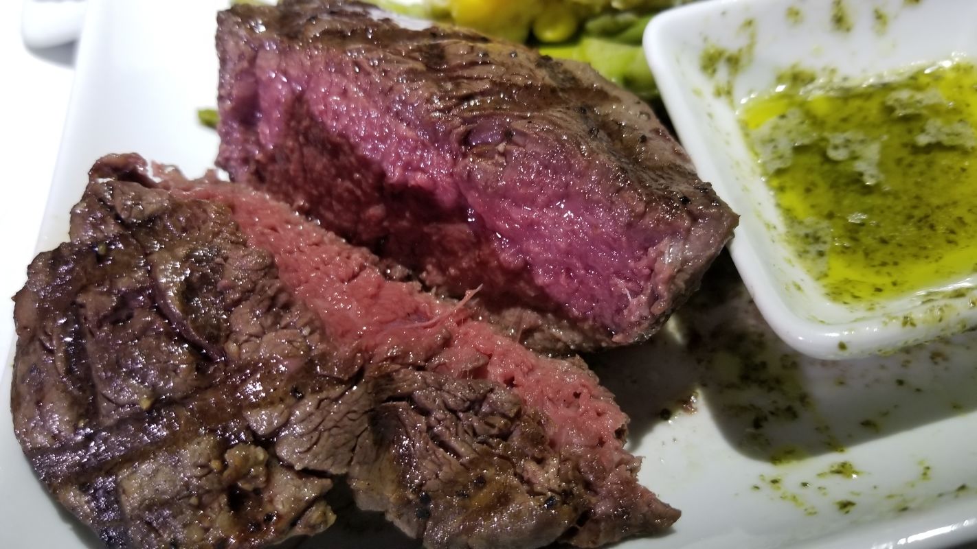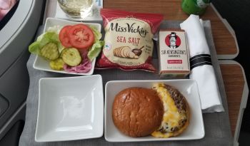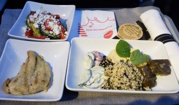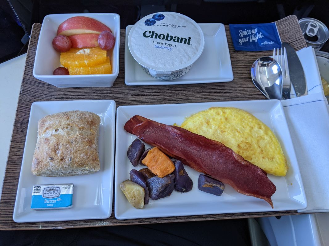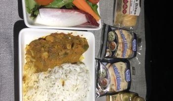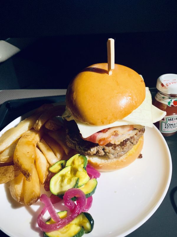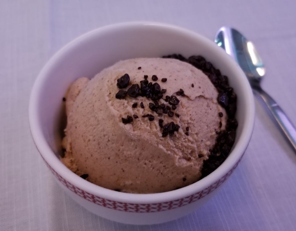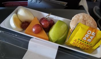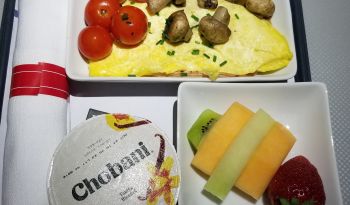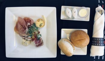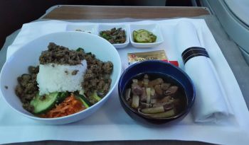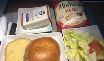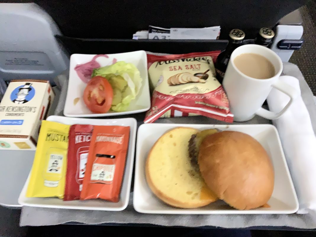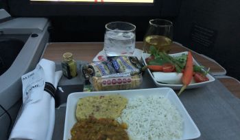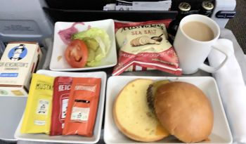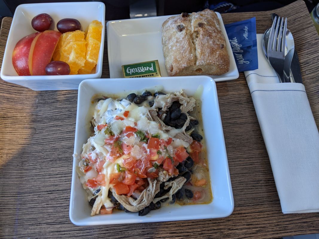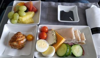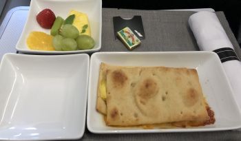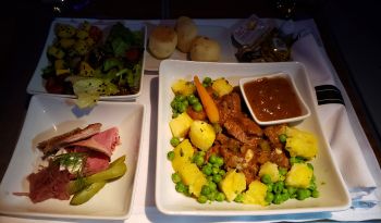 Porcini crusted filet mignon was amazing. By far the best meal I've had in the sky. Juicy and cooked medium.