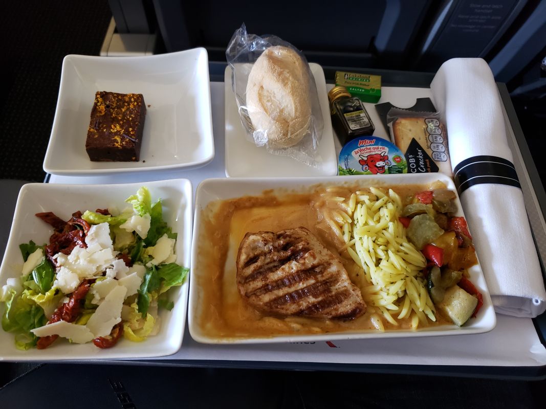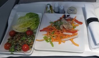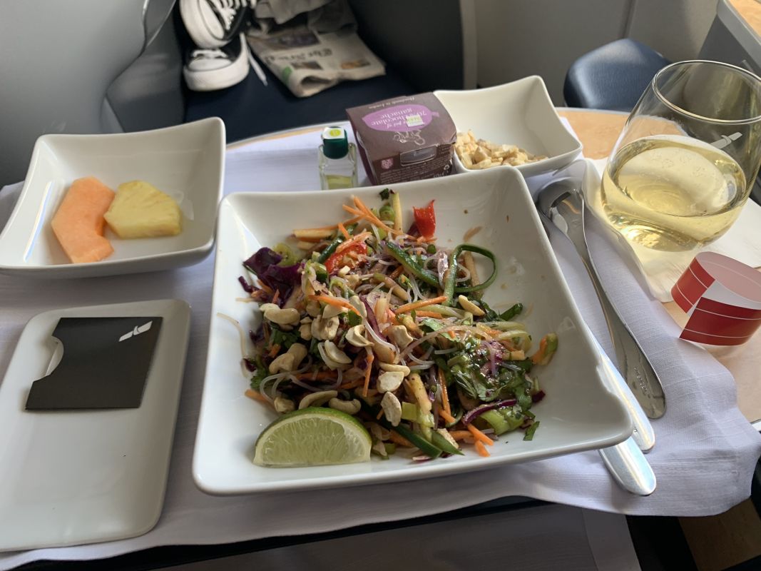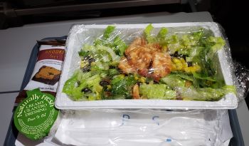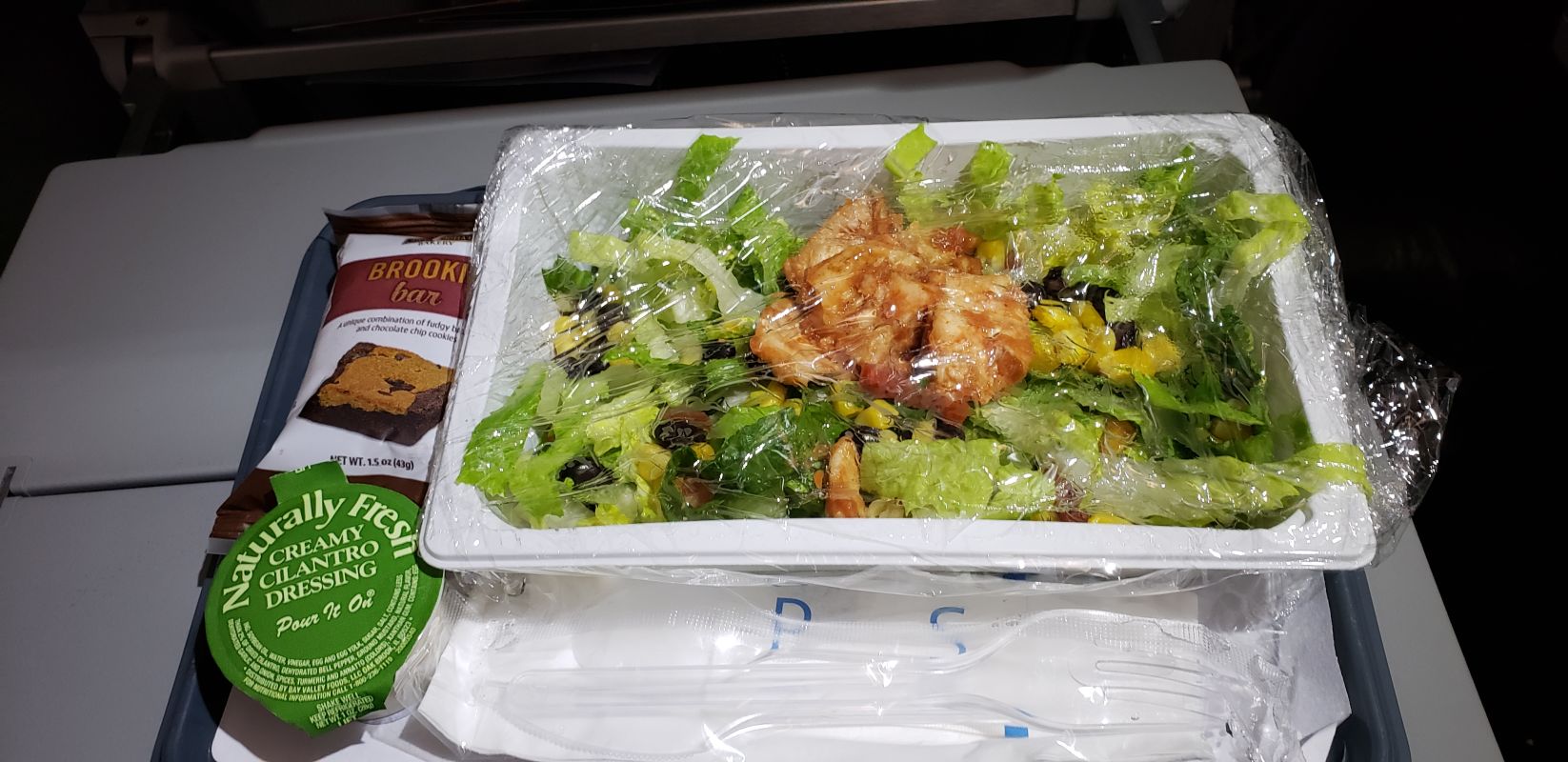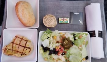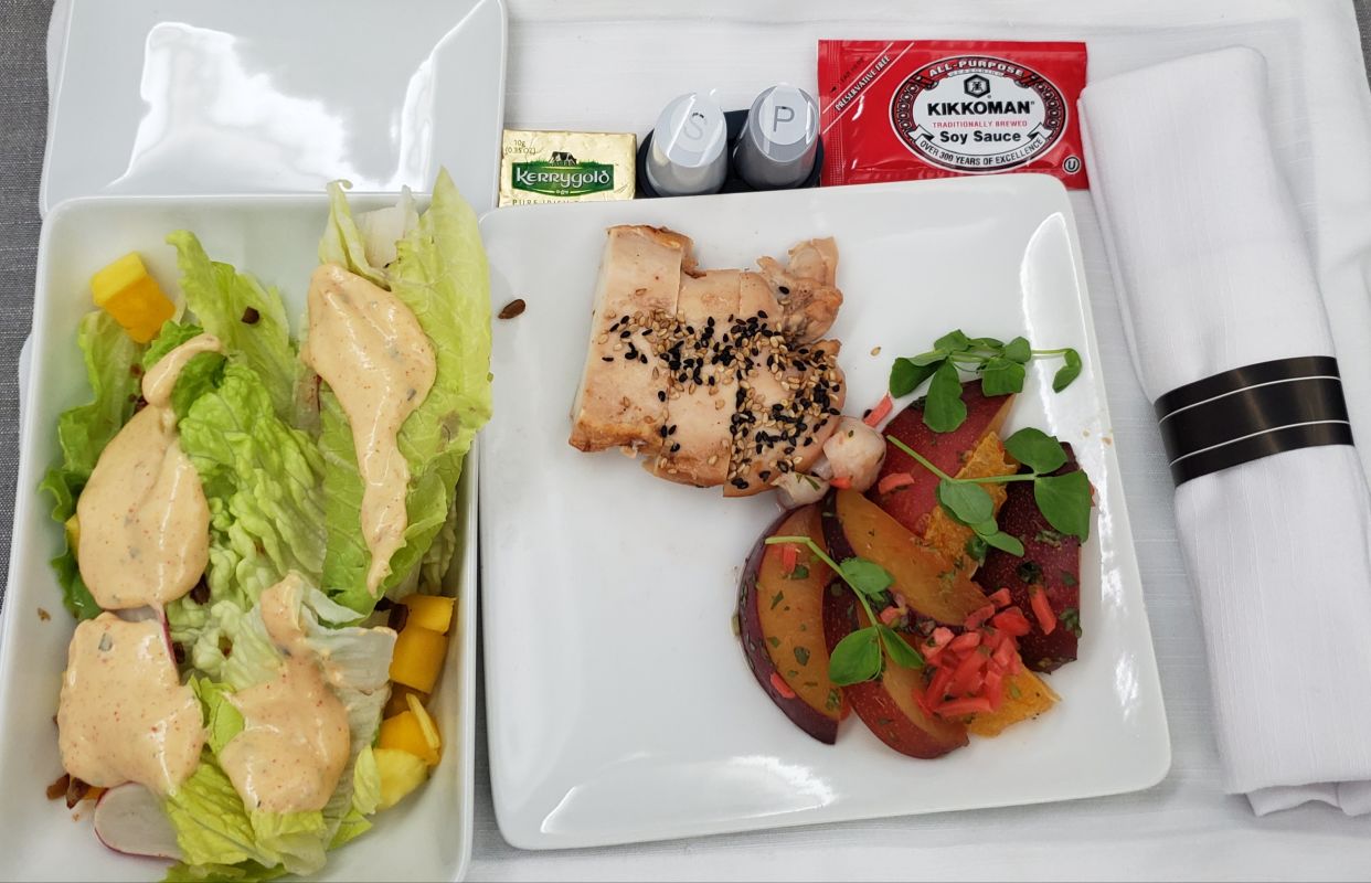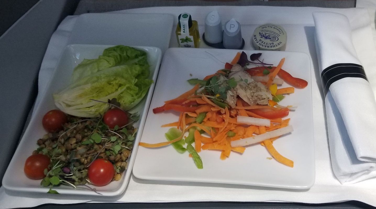 Salad with chicken. Surprisingly fresh and ready for an 3 hours international Y class meal