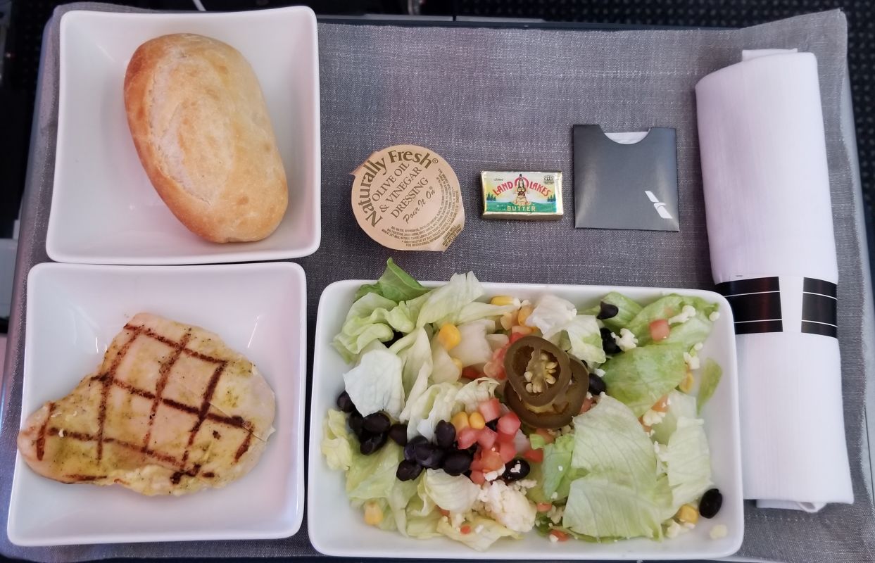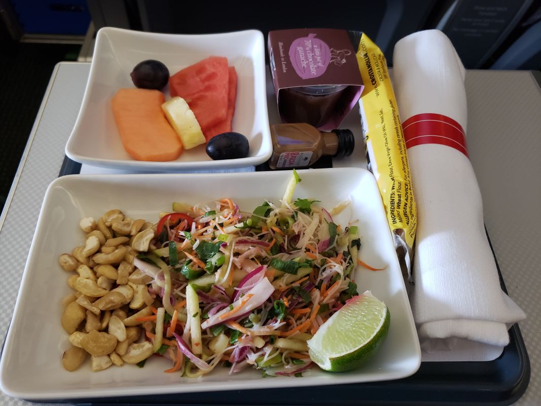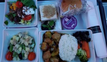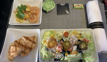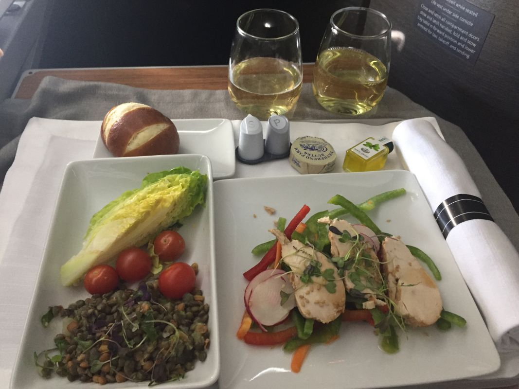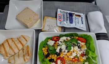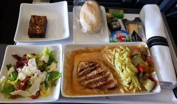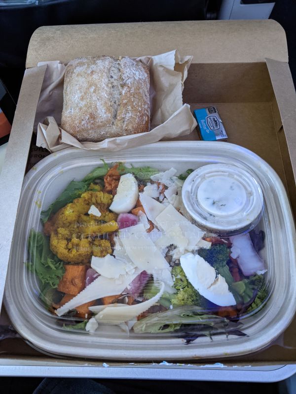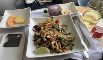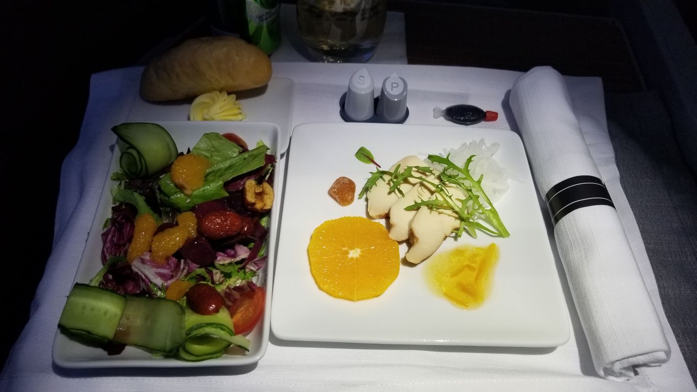 Salad with chicken. Surprisingly fresh and ready for an 3 hours international Y class meal