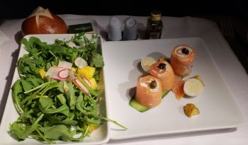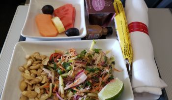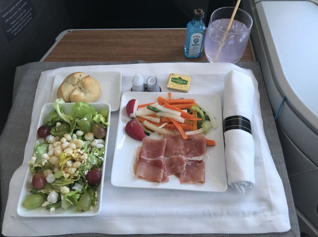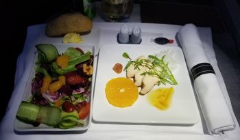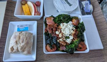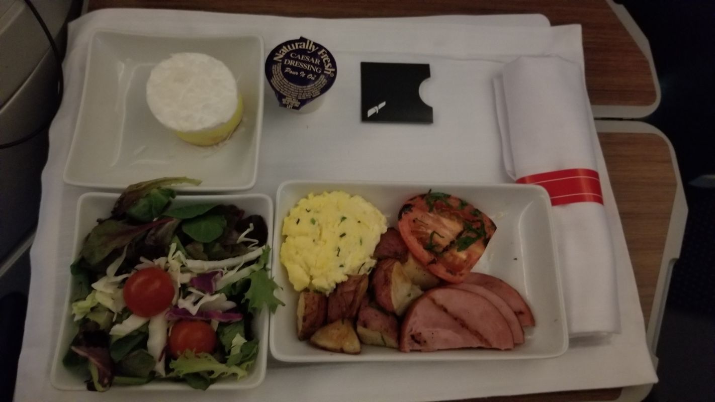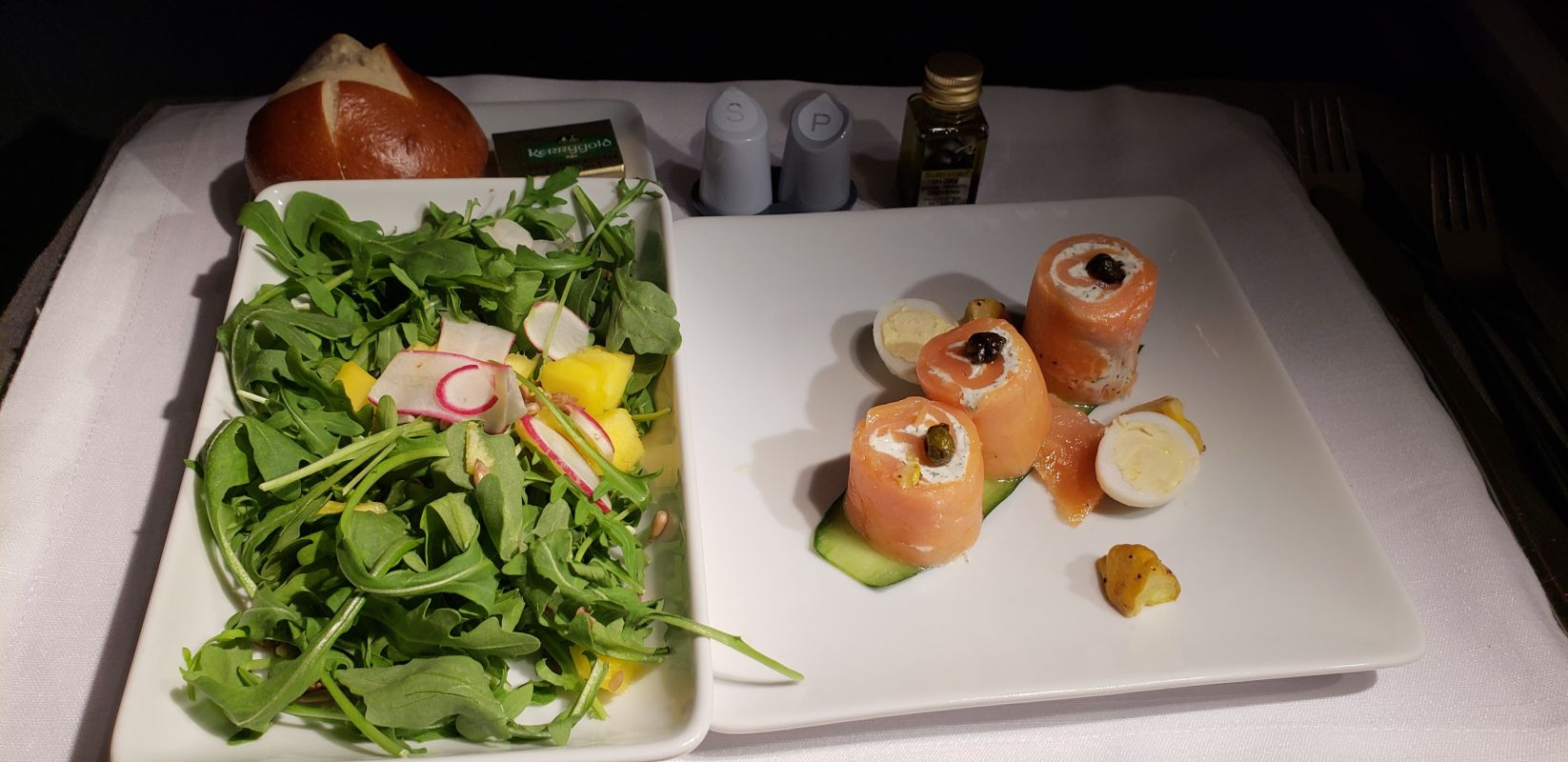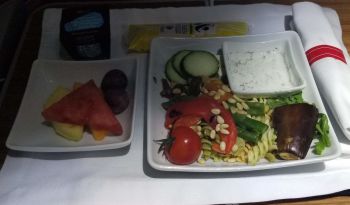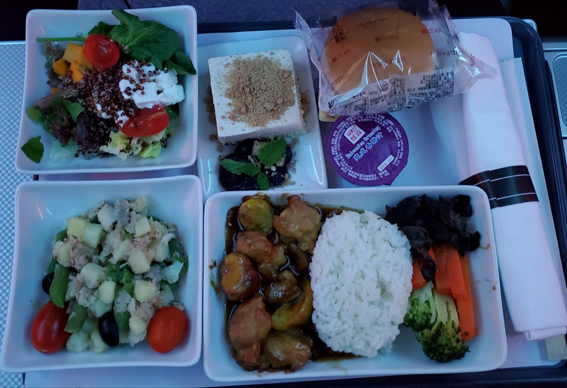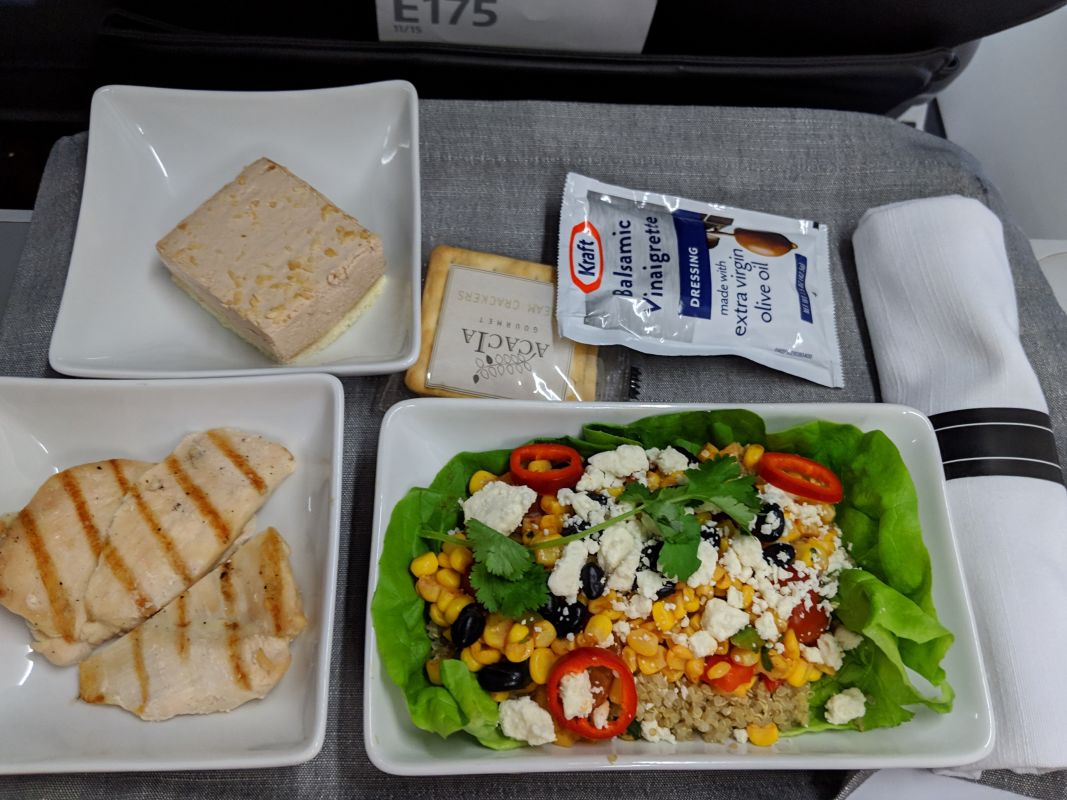 Salad with chicken. Surprisingly fresh and ready for an 3 hours international Y class meal