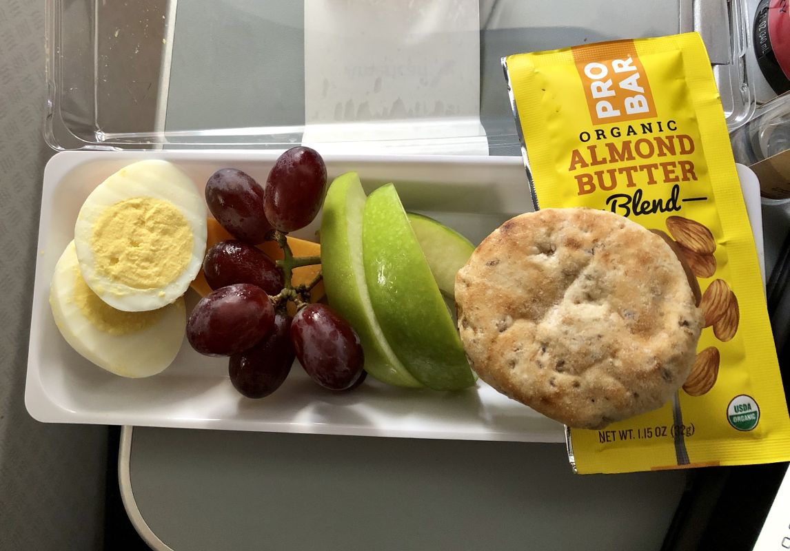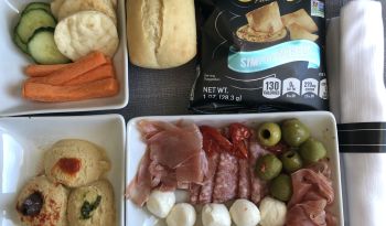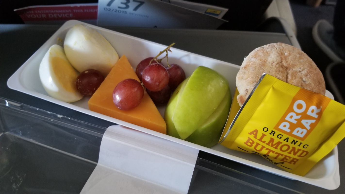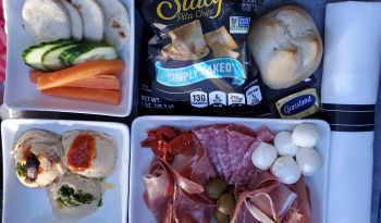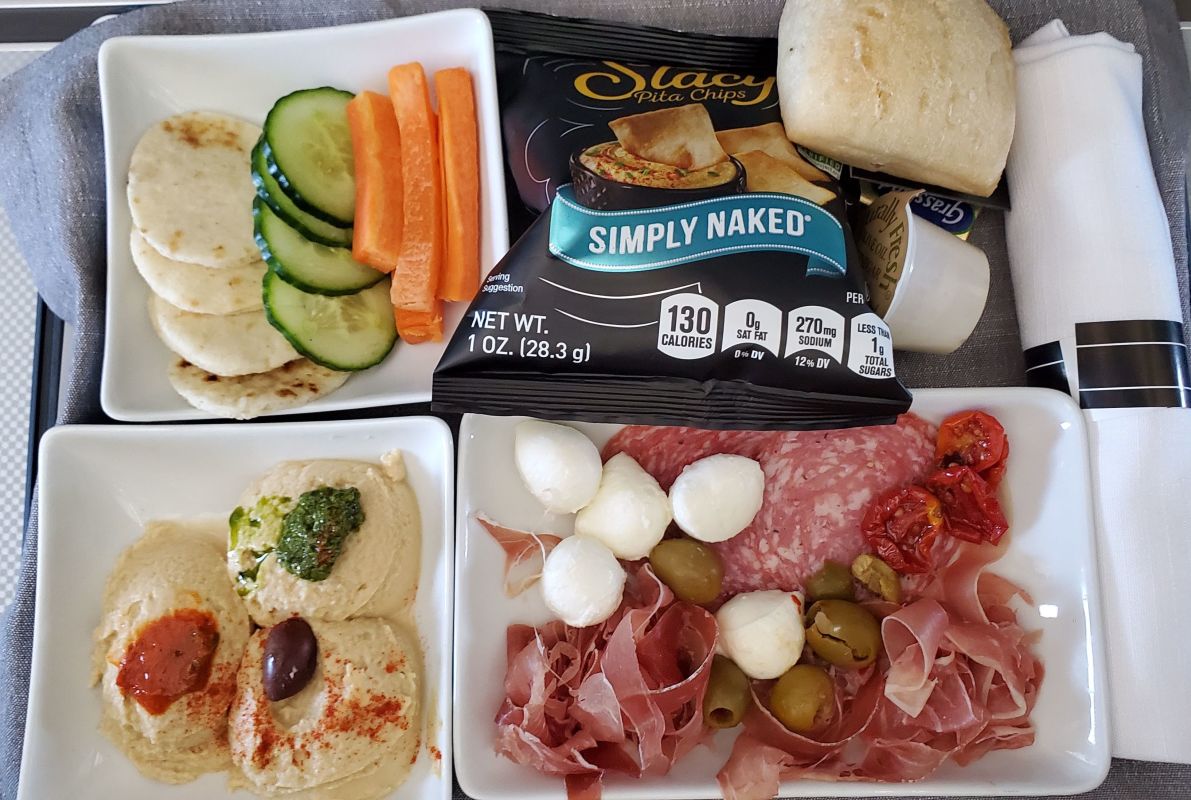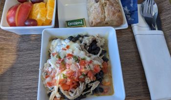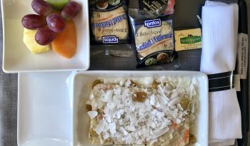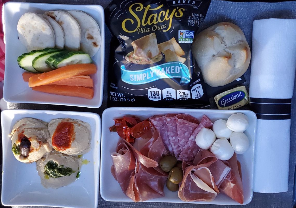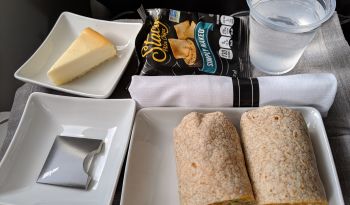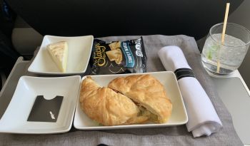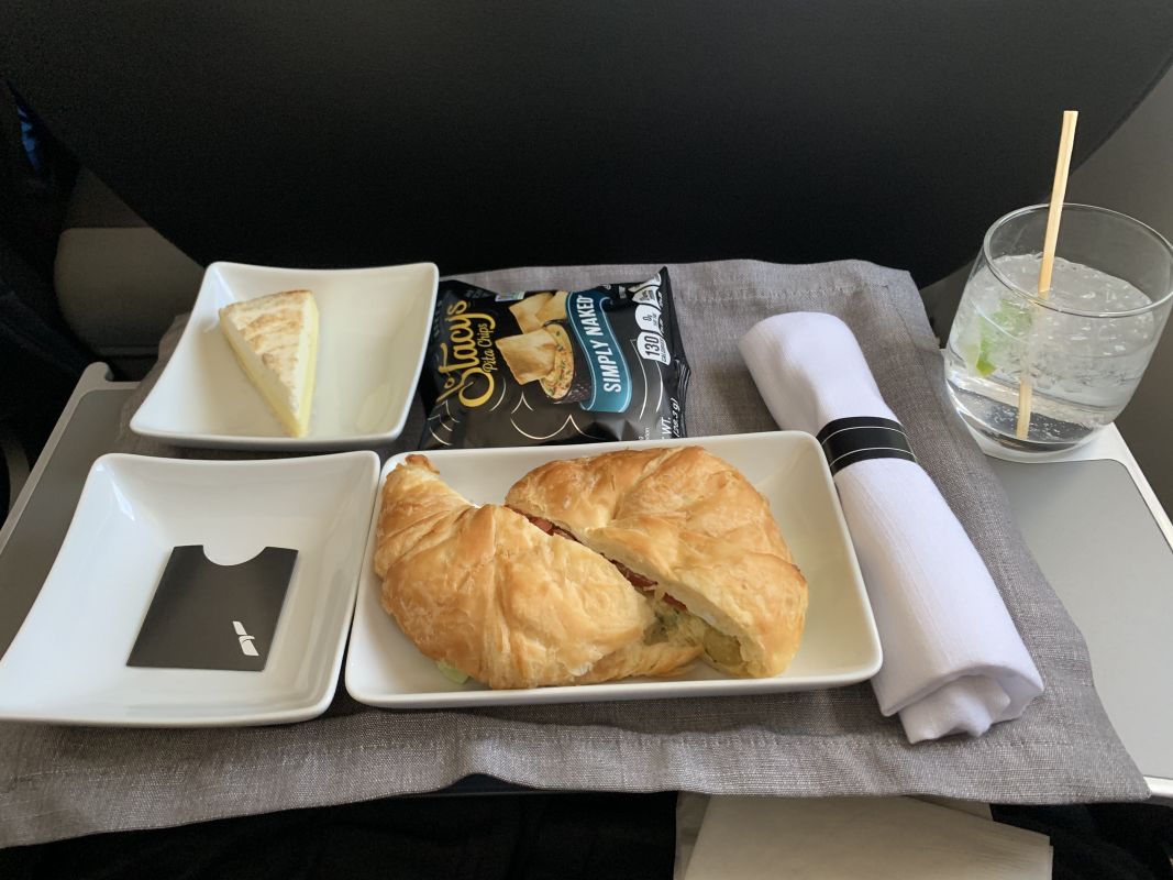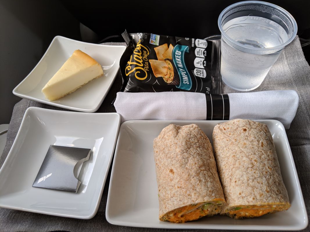 Some sort of curry chicken croissant sandwich. Cheesecake, Stacy’s Pita Chips. It was not great but just ok.