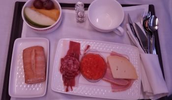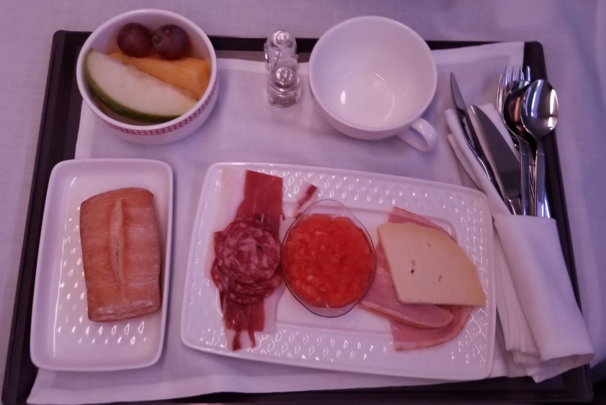 Light meal: Iberico ham, fuet sausage, turkey lacon and cheese; tomato and extra-virgin olive oil; seasonal fresh fruit