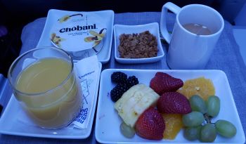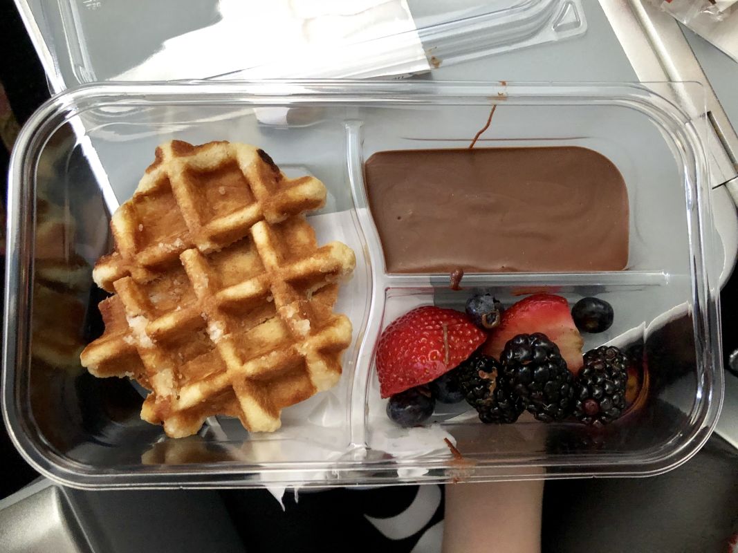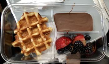 Zoe's Kitchen Continental Breakfast Box - my 10 year old loved it. The berries were very fresh. Plenty of nutella but a smallish sized waffle.