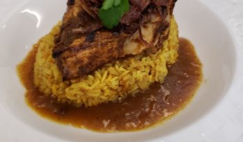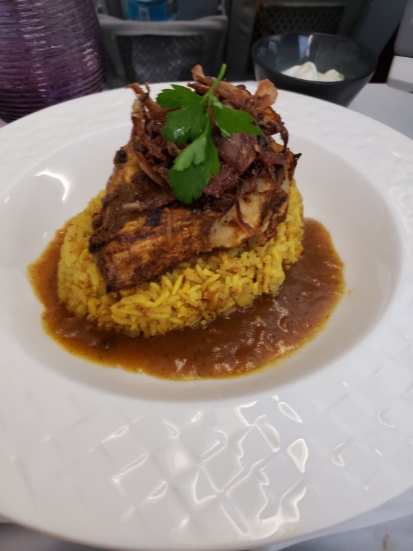 Chargrilled Arabic spices chicken breast with machboos rice - moist, flavourful, excellent entree