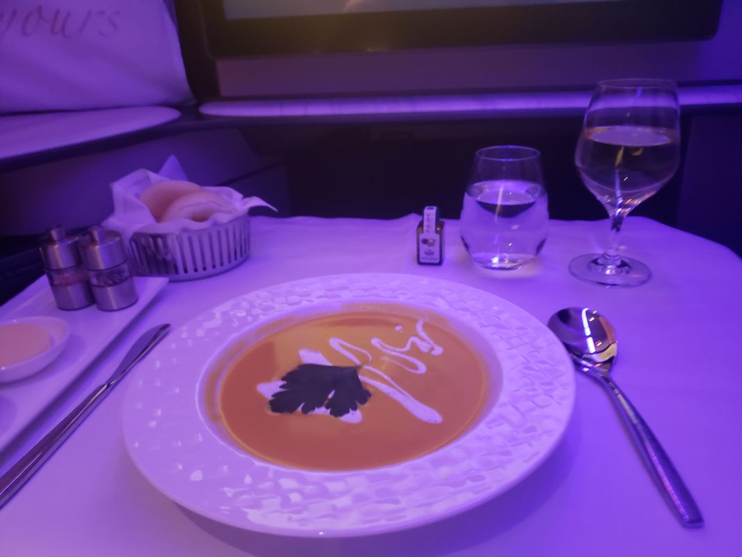 Cream of pumpkin and lemongrass soup - excellent, rich and flavorful