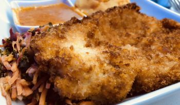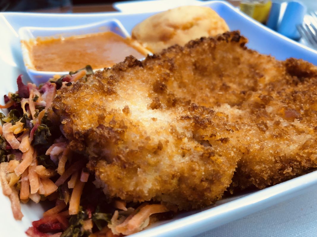 Panko Crusted Chicken Breast with Buffalo Sauce and Jalapeño Corn Muffin