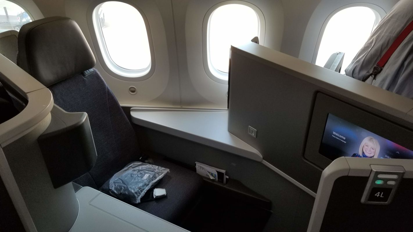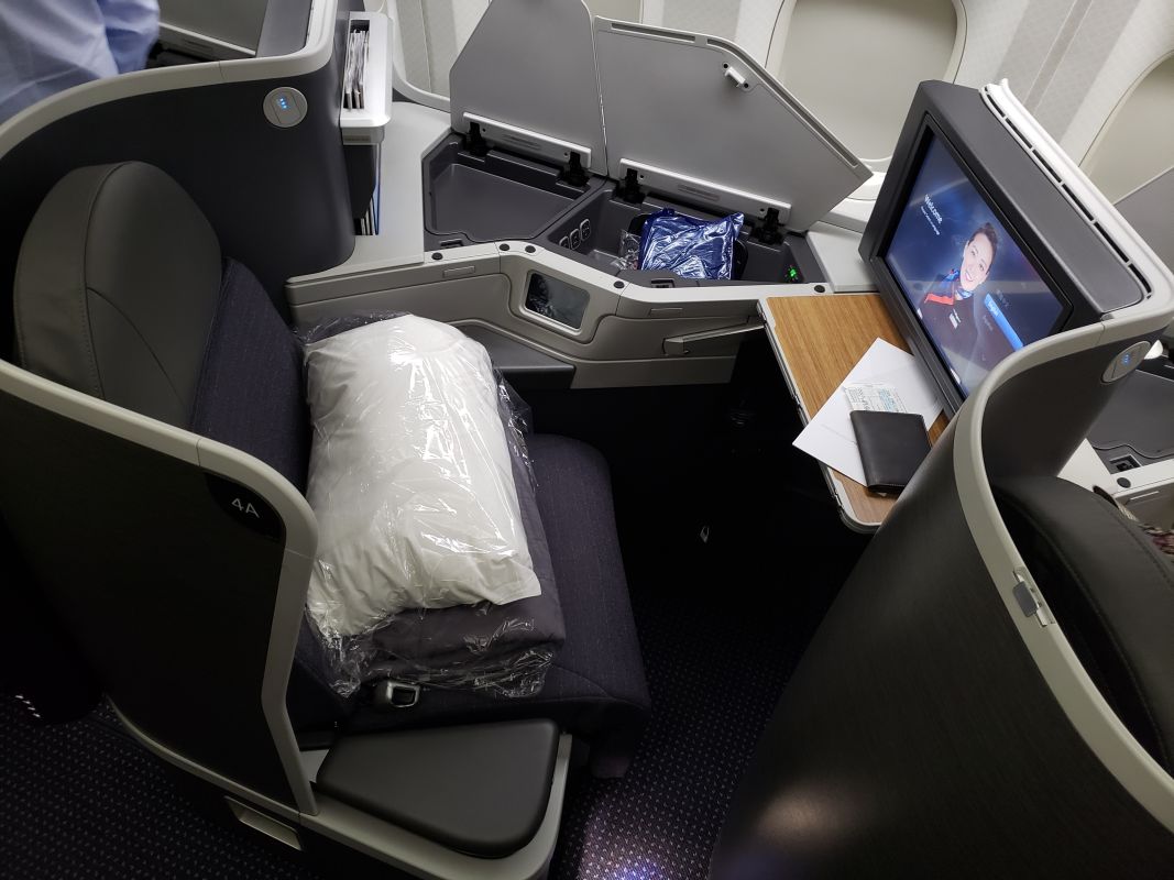 Seat 4A; these are legacy lie-flat envoy suites. They have a good amount of storage and decent IFE system, but definitely show their age.