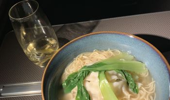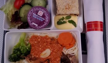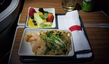 Grilled Lemongrass Shrimp served chilled with Lijiang noodles (mid-flight snack)